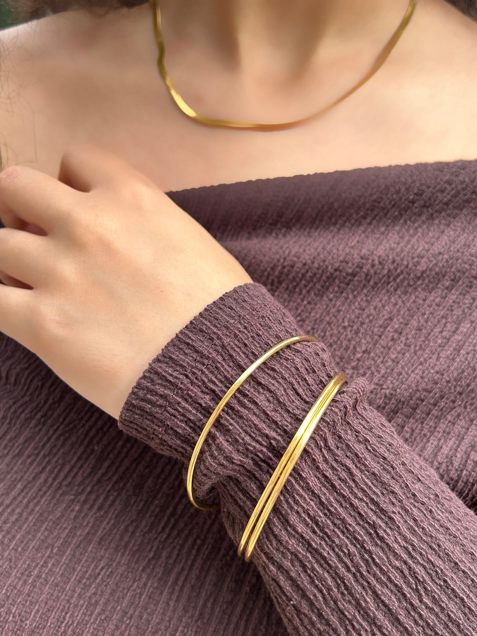 Lot de 3 bracelets fins en acier inoxydable, disponibles en argenté et doré. Simples et élégants, ils apportent une touche moderne à votre style.